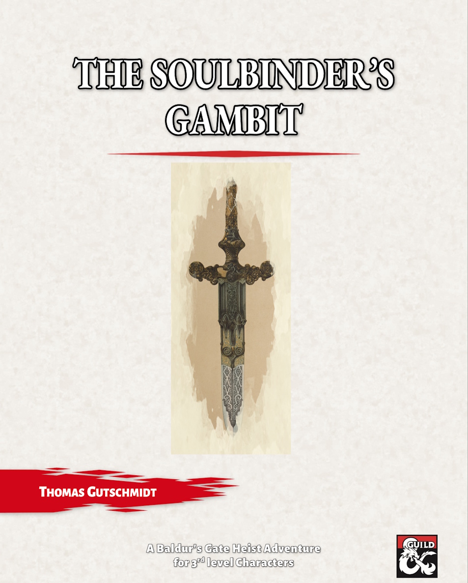 I’m excited to announce that The Soulbinder’s Gambit, my Baldur’s Gate heist adventure, is now available as Pay What You Want on the DMs Guild!